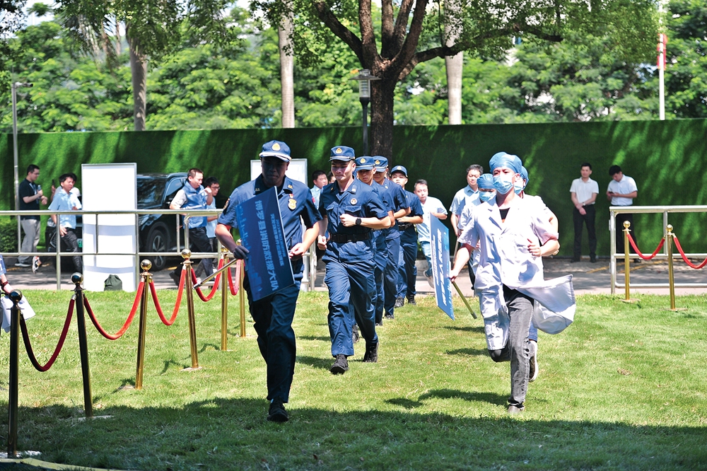 應(yīng)急演練現(xiàn)場(chǎng);葜萑?qǐng)?bào)記者陳春惠 通訊員惠環(huán)宣 攝
