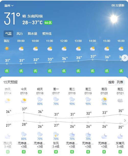 受其影響,7月16日我市多云轉(zhuǎn)雷陣雨局部大雨;17~18日,南部大雨到暴雨局部大暴雨,中北部中到大雨局部暴雨;19~20日,降水仍頻繁。另外,16日起我市南部、沿海及近海海域風(fēng)力逐漸加大至6~8級(jí),陣風(fēng)8~10級(jí)。