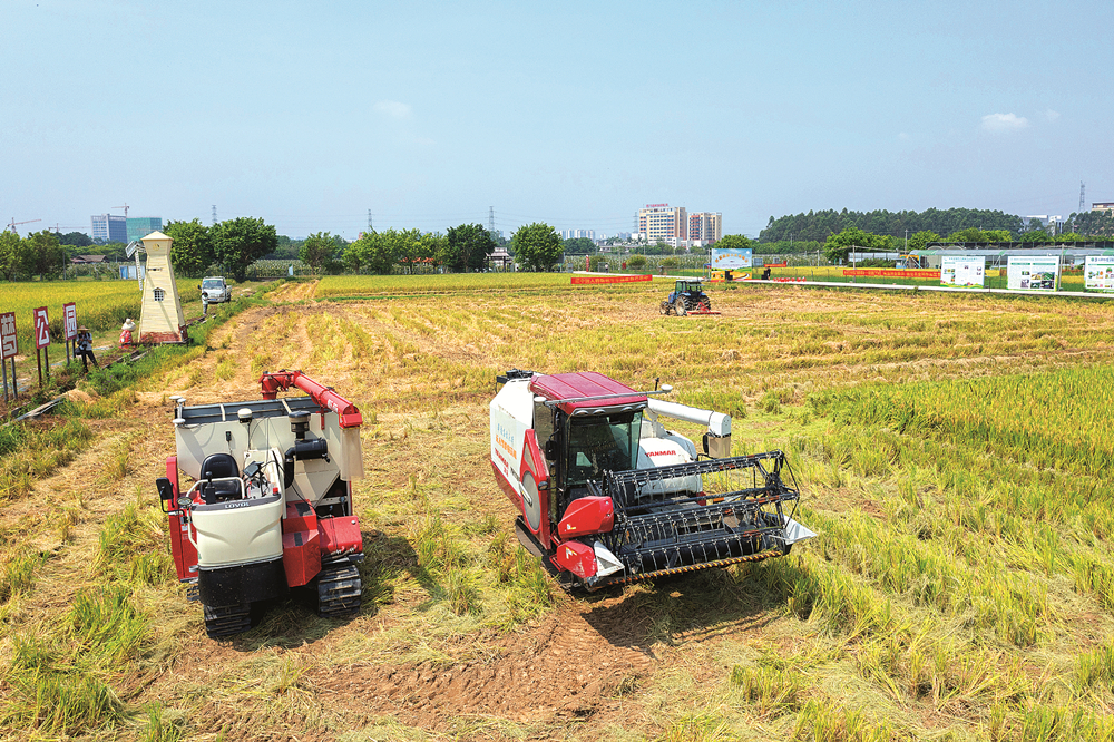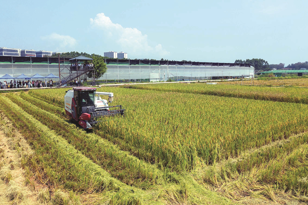 無人駕駛收割機在田間作業(yè)。惠州日報記者湯渝杭 攝