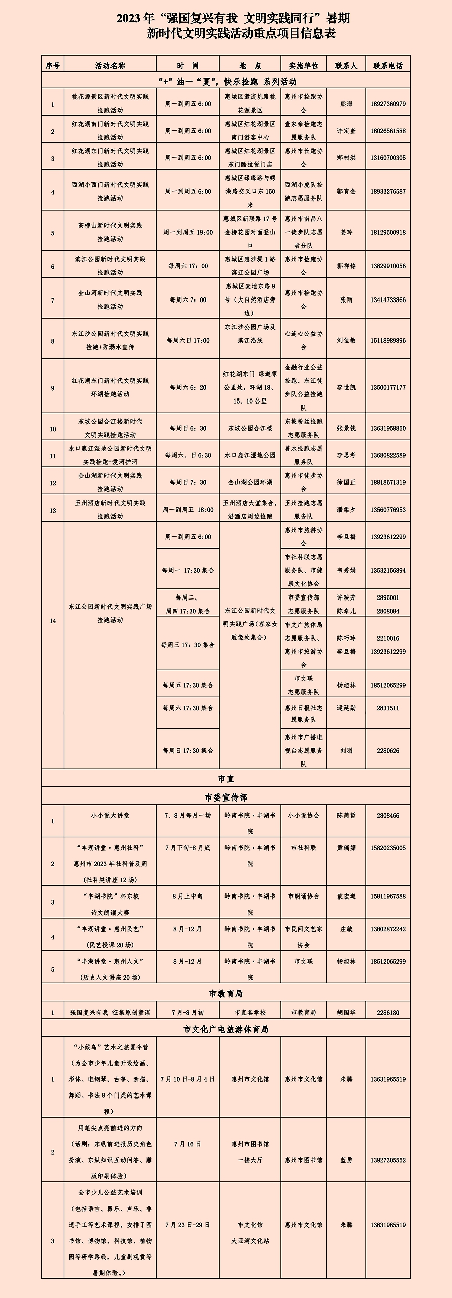 惠州日報訊 (記者龔妍 通訊員梁玉丹)218項文明實踐活動讓你的暑假生活有“知”有“味”。7月16日,記者從市委宣傳部獲悉,今年暑假,我市將以各新時代文明實踐中心、所、站為依托,精準(zhǔn)對接群眾需求,堅持“公益+志愿”理念,用活室內(nèi)與室外陣地,圍繞公益撿跑、文化藝術(shù)、體育運動、勞動實踐等主題,在全市范圍內(nèi)開展218項主題鮮明、內(nèi)容豐富的新時代文明實踐活動,進(jìn)一步豐富廣大市民朋友的暑假生活。