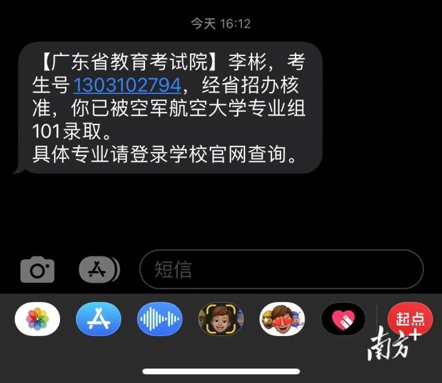 “收到錄取短信時,很激動很開心!”惠州市第一中學鄧遠航同學告訴記者,小時候他就很崇拜空軍飛行員,飛上藍天保衛(wèi)祖國山河是一件很酷的事。鄧遠航因此立志成為一名飛行員,逐夢藍天。高三在學?吹娇哲娬酗w海報時,他毫不猶豫報了名。