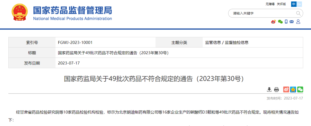 7月17日,國家藥監(jiān)局網(wǎng)站發(fā)布關(guān)于49批次藥品不符合規(guī)定的通告。