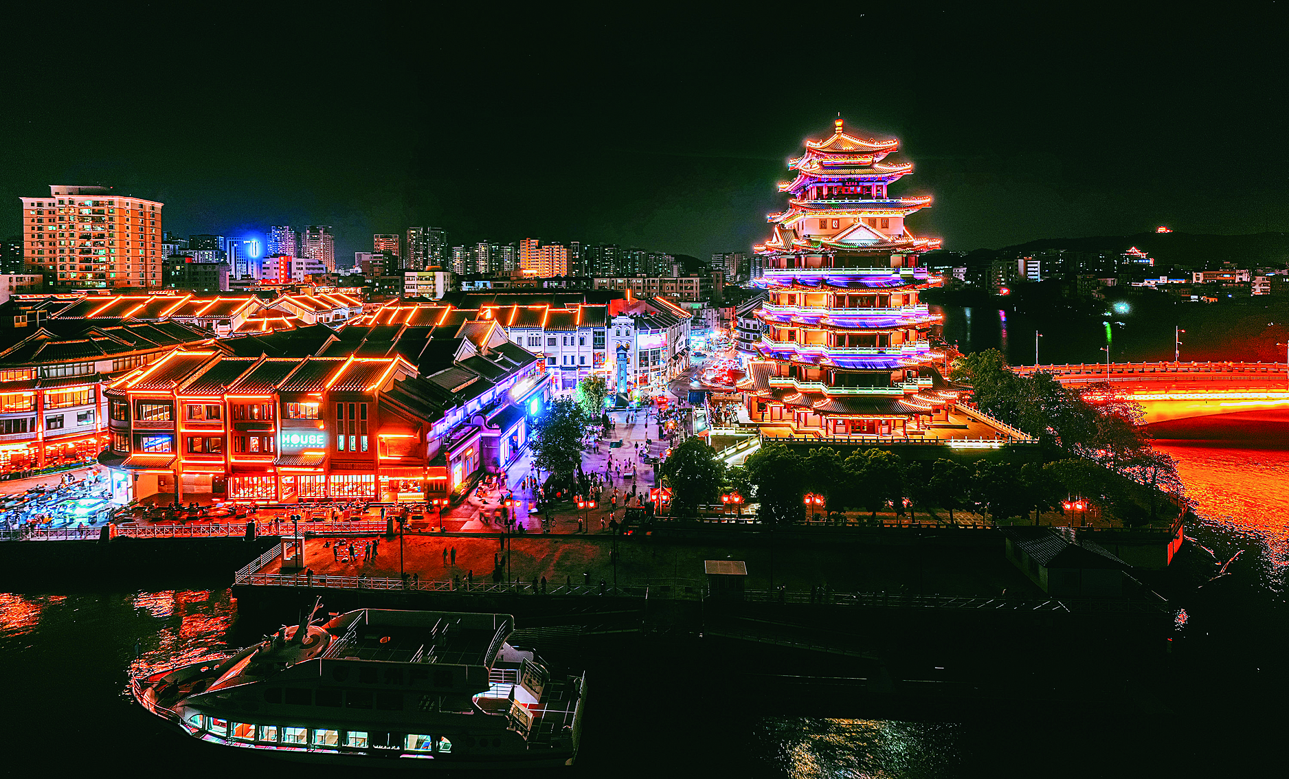 東江游碼頭位于惠城區(qū)水東街。傍晚,不少市民來到水東街散步。這里有絢麗奪目的騎樓燈光秀、從街頭到街尾的精彩演出,還有創(chuàng)意集市、潮流美食,這里可看、可購、可玩、可體驗(yàn)。水東街也是惠州各類活動(dòng)青睞的地點(diǎn)。今年以來,春節(jié)、五一、清明、端午等多個(gè)假期,國潮嘉年華、非遺嘉年華、不夜古街、東坡對(duì)話等主題活動(dòng)輪番在水東街舉行。這些活動(dòng)吸引了眾多人氣,也帶動(dòng)了附近的東江游項(xiàng)目。