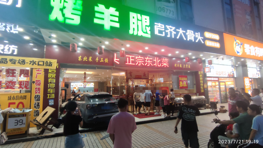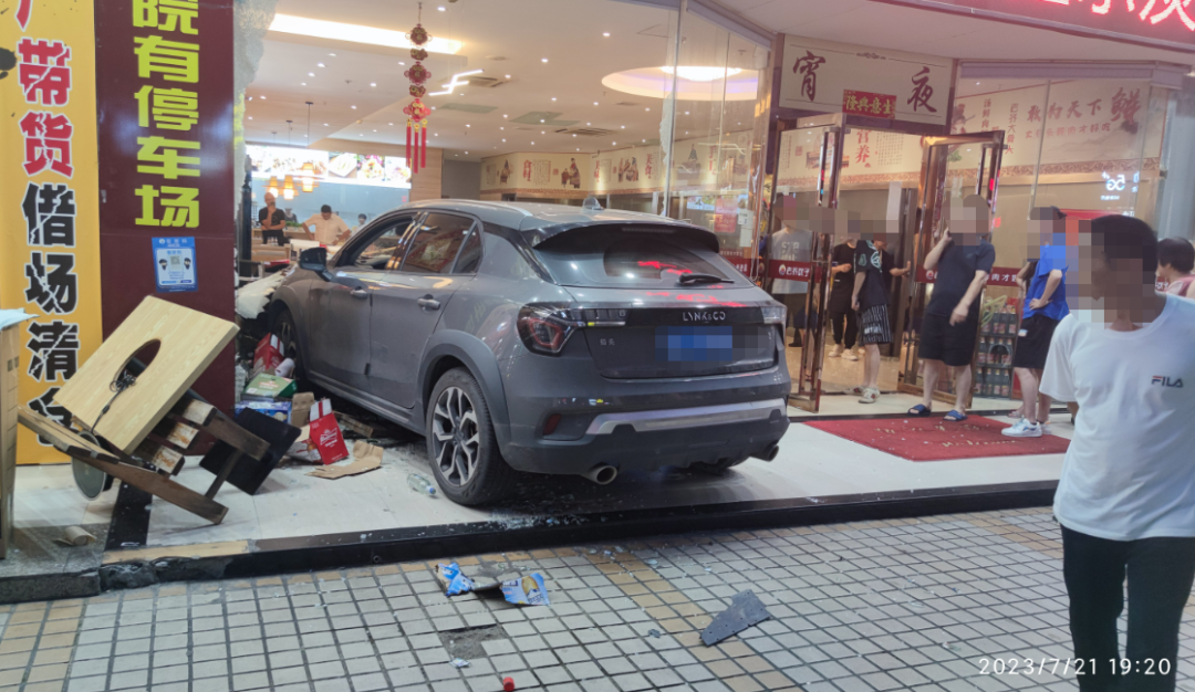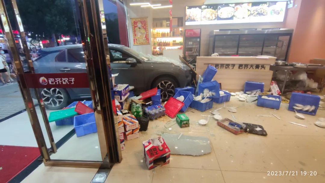把門口的玻璃門和前臺都撞爛了。