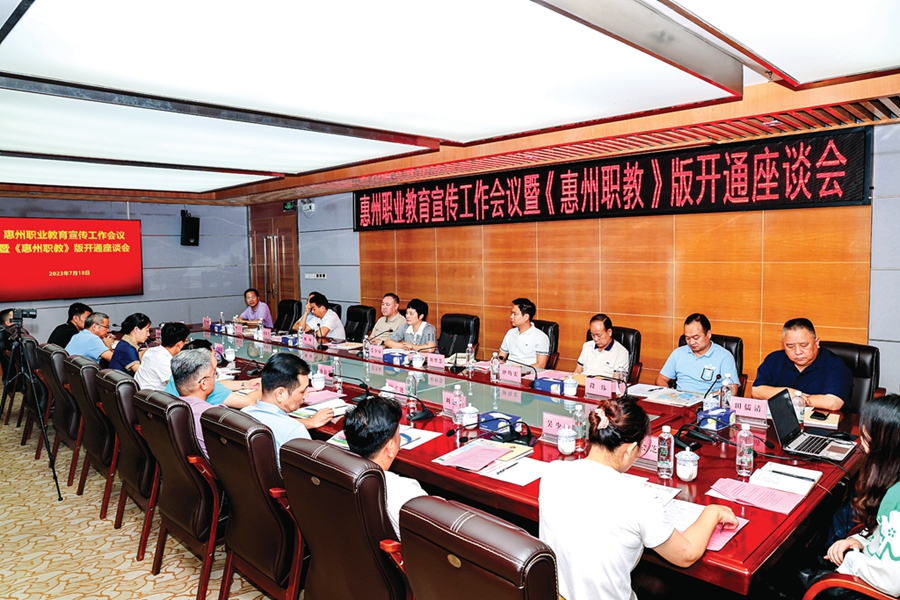7月18日,由惠州市教育局、惠州市人力資源和社會保障局、惠州日報社、惠州市職教協(xié)會共同主辦的惠州職業(yè)教育宣傳工作會議暨《惠州職教》版開通座談會在惠州日報社舉行,來自惠州職教界的大咖們紛紛圍繞借力主流媒體、做好職教宣傳進行主題發(fā)言。大家表示,當(dāng)前開通《惠州日報·惠州職教》版(以下簡稱《惠州職教》)、“惠職惠教”微信公眾號和視頻號正逢其時,是宣傳惠州職業(yè)教育最好的平臺,對職業(yè)學(xué)校而言是福音。大家希望借助權(quán)威媒體的力量,通過全媒體手段宣傳職教政策、塑造職業(yè)教育正面形象,營造讀職業(yè)學(xué)校同樣前途廣闊、大有可為的社會氛圍。
