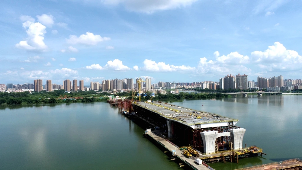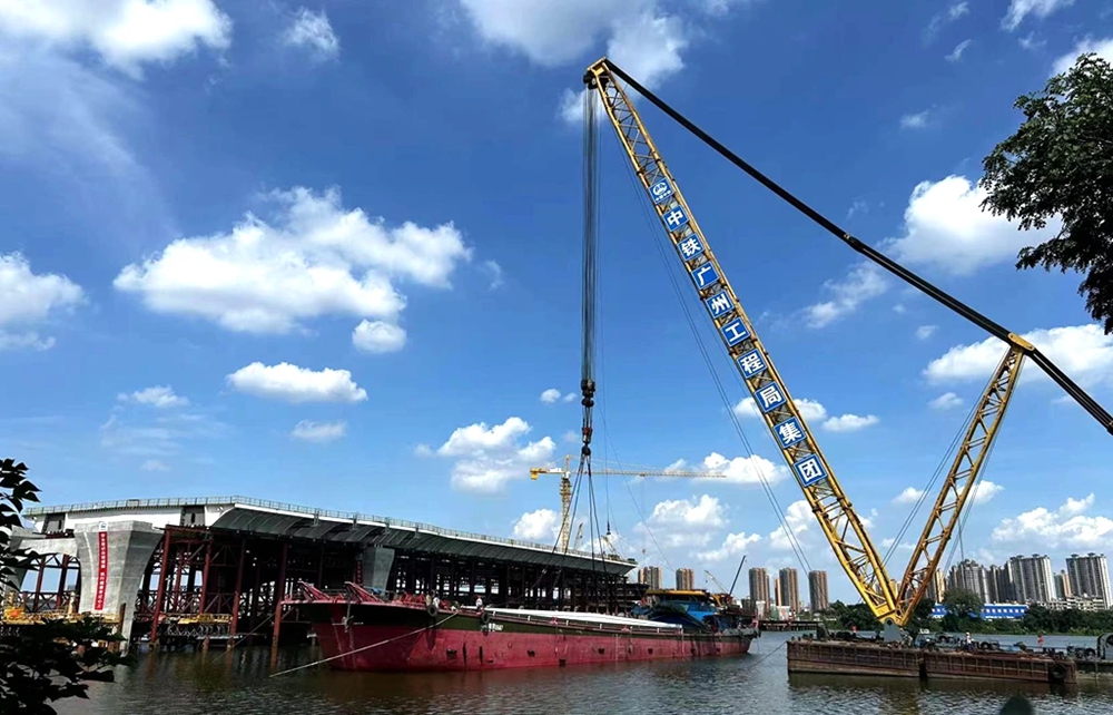 7月25日下午4時,由中鐵廣州局承建的鵝城大橋江北側(cè)最后一片鋼梁穩(wěn)穩(wěn)落在支座上,標(biāo)志著大橋江北側(cè)完成鋼梁架設(shè),為明年建成通車奠定基礎(chǔ)。