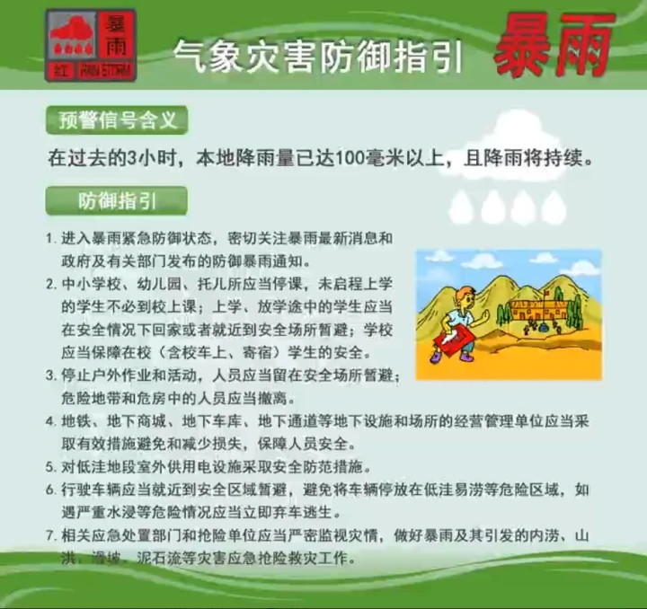 惠州市氣象臺(tái)07月29日07時(shí)發(fā)布短時(shí)天氣預(yù)報(bào):預(yù)計(jì)未來(lái)6小時(shí),市區(qū)大雨到暴雨轉(zhuǎn)陣雨,降雨時(shí)伴有雷暴、短時(shí)強(qiáng)降水和短時(shí)大風(fēng)等強(qiáng)對(duì)流天氣,氣溫26到30℃,東南風(fēng)2-3級(jí),相對(duì)濕度75%到100%。