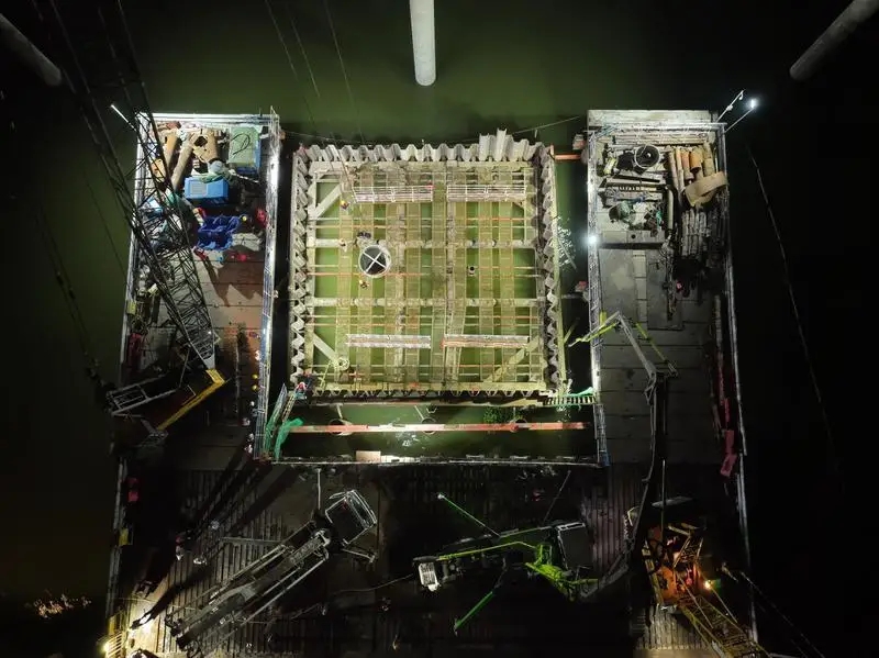 惠河高速改擴建項目全長約116.6公里。其中,由保利長大承建的東江特大橋是項目控制性工程,上部構造為連續(xù)鋼構橋,大橋共計3個主墩承臺,主墩含27根2.5米直徑的鉆孔灌注樁。承臺封底混凝土澆筑是決定承臺施工進度和工程質量的關鍵工序之一。本次澆筑的東江特大橋主墩共計9根鉆孔灌注樁,水中承臺高30米,實際澆筑混凝土方量約900立方米,具有施工工藝復雜、質量控制難度大、施工難度高等特點。