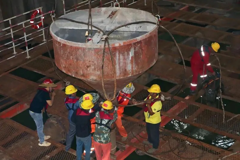 施工工人現(xiàn)場安裝導管,為澆筑做準備。