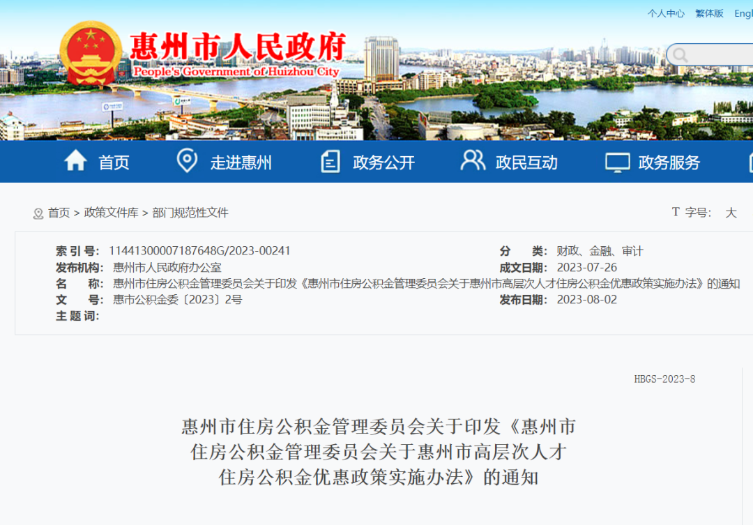 詳情請戳鏈接:惠州市住房公積金管理委員會關于印發(fā)《惠州市住房公積金管理委員會關于惠州市高層次人才住房公積金優(yōu)惠政策實施辦法》的通知