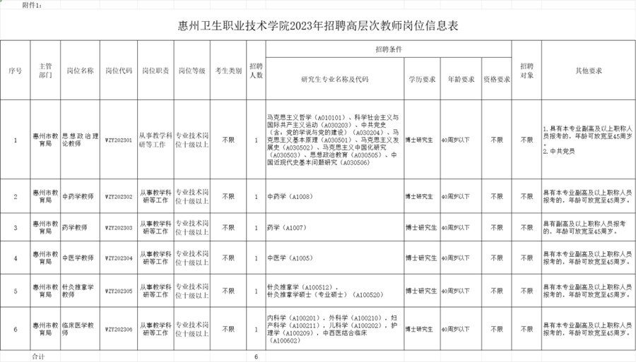 惠州衛(wèi)生職業(yè)技術(shù)學(xué)院2023年招聘高層次教師