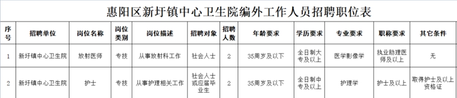 惠陽區(qū)新圩鎮(zhèn)中心衛(wèi)生院招聘