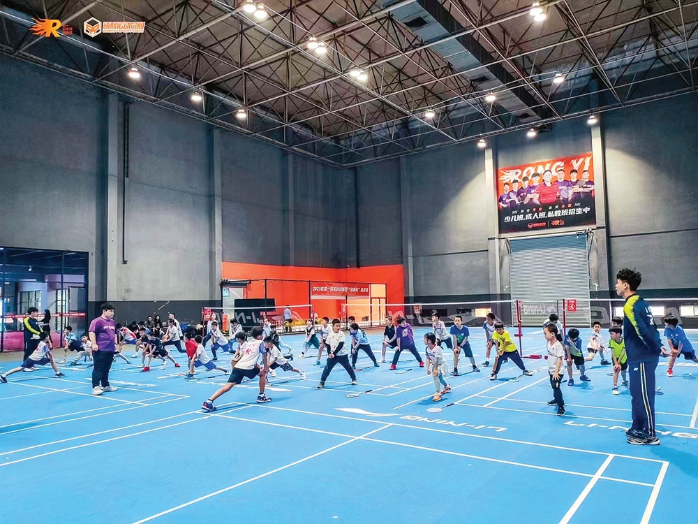 孩子們在場館內(nèi)上羽毛球培訓課。