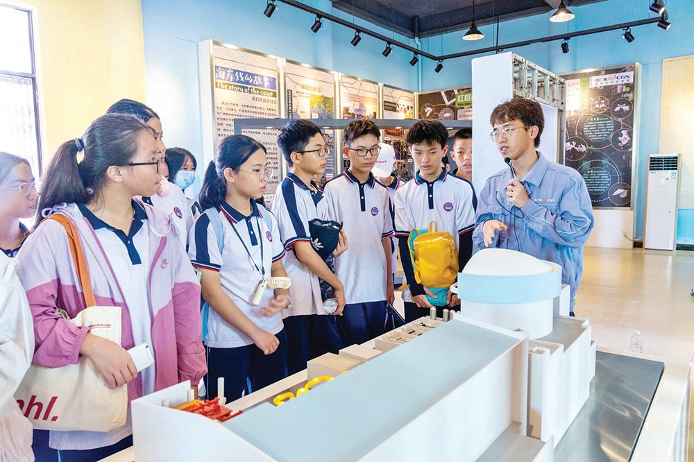 同學(xué)們走進(jìn)生態(tài)核電科普展廳參觀。