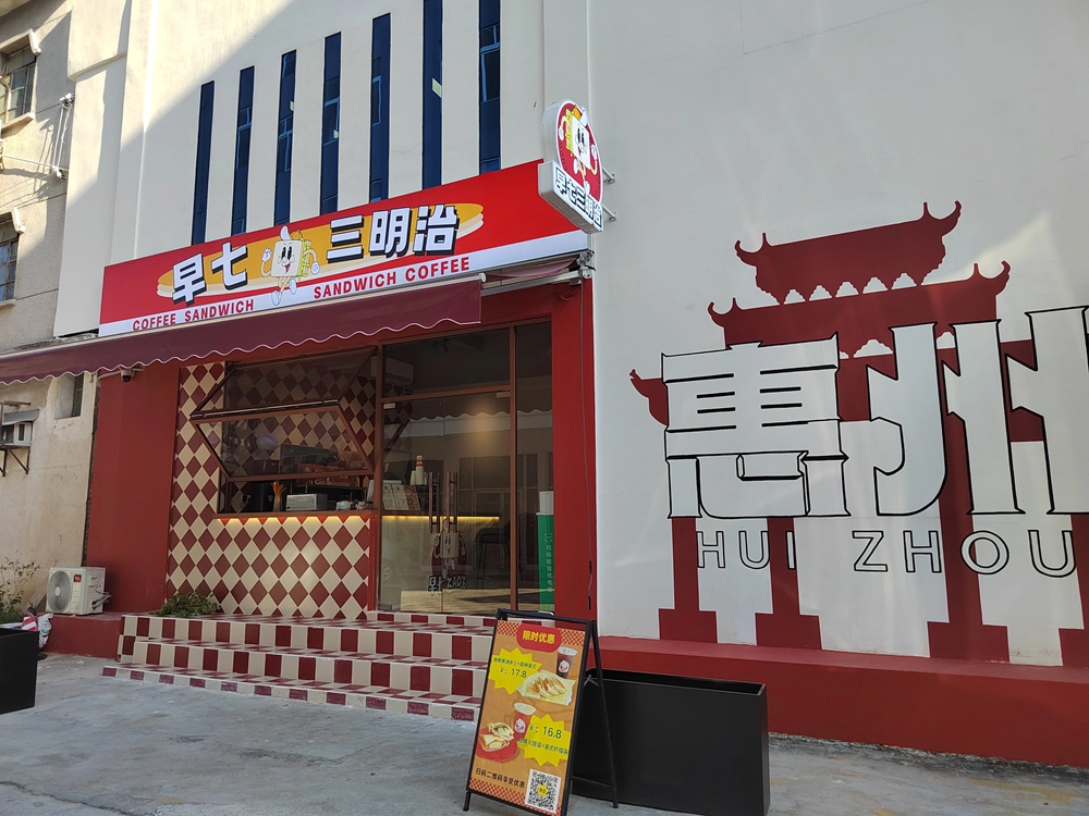 記者采訪當(dāng)天,適逢入駐產(chǎn)業(yè)園的“嘆咖啡”開(kāi)門(mén)迎客,這里原是老廠房的大門(mén)保安亭,設(shè)計(jì)改造為時(shí)尚咖啡廳!皣@咖啡”負(fù)責(zé)人方耿介紹,“嘆咖啡”是惠州本土咖啡店,創(chuàng)立于2015年,他看到祝屋巷和產(chǎn)業(yè)園日益高漲的人氣,希望讓更多人知道惠州也有好喝的咖啡。