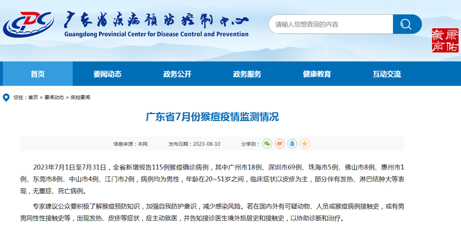 廣東省7月份猴痘疫情監(jiān)測(cè)情況