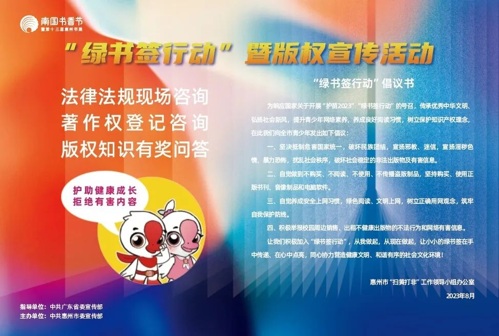 本屆書(shū)展由中共廣東省委宣傳部指導(dǎo)、中共惠州市委宣傳部主辦,以“書(shū)香嶺南三十載 賡續(xù)文脈新征程”為口號(hào),采取線(xiàn)上線(xiàn)下結(jié)合、全市各級(jí)聯(lián)動(dòng)、分散同期辦展的形式進(jìn)行,將有近百場(chǎng)活動(dòng)在書(shū)展中呈現(xiàn)。