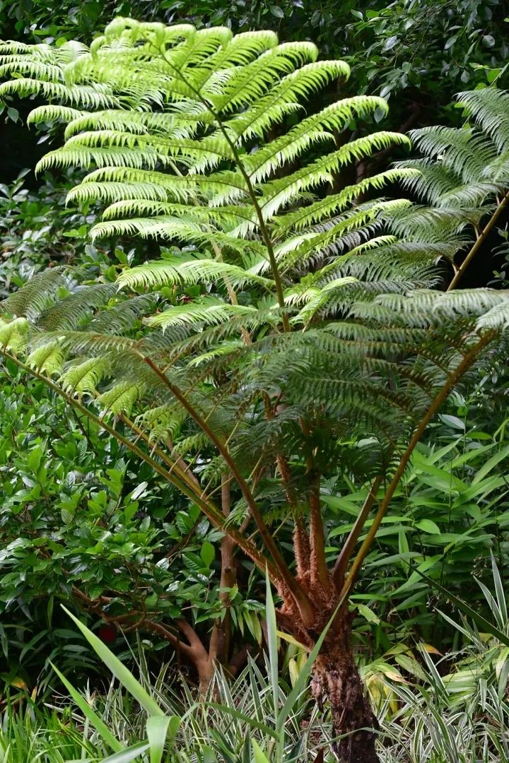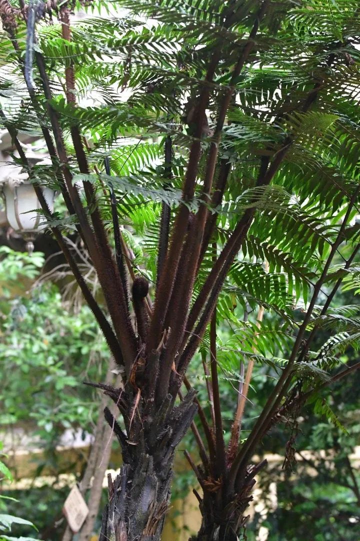 在惠州植物園陰生園里,有多株“與恐龍同時(shí)代”樹,它們就是黑桫欏和筆筒樹,都屬于國家二級保護(hù)野生植物。早在數(shù)億年前的侏羅紀(jì),蕨類植物就在這顆星球上盤根錯(cuò)節(jié),稱霸整個(gè)植物界,而黑桫欏和筆筒樹都屬于桫欏科樹狀植物,起源于約3億6000年前的中生代侏羅紀(jì),是當(dāng)時(shí)恐龍的主要食糧,被人們稱為植物界的“活化石”;葜葜参飯@通過遷地保護(hù),在陰生園內(nèi)種了7株黑桫欏和2株筆筒樹,讓這些珍稀瀕危植物重返人們視野。