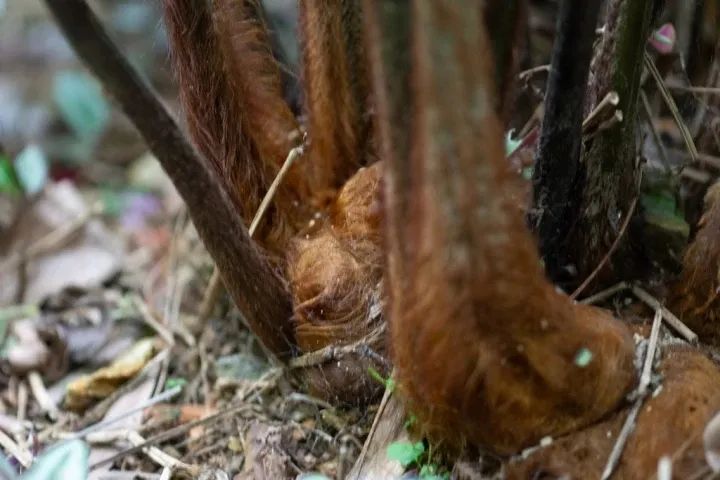 在植物園鄉(xiāng)土珍稀園里,有一些看似不起眼的“野草”,但它可是國家二級保護(hù)野生植物。金毛狗屬于樹形蕨類植物,喜愛明亮的散射光線、溫暖濕潤的氣候。它露出地面部分密被金黃色長茸毛,狀似伏地的金毛狗頭,才因此得名。