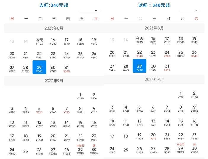 注:下述截圖時(shí)間基本在8月15日下午15:20前后,數(shù)據(jù)均來(lái)自攜程,因機(jī)票變動(dòng)較快,大家購(gòu)票請(qǐng)以實(shí)際為準(zhǔn)!