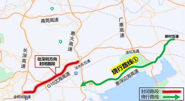 交通組織調(diào)整:施工期間,G15沈海高速公路淡水東互通往深圳方向主線封閉,禁止車(chē)輛通行;沙田收費(fèi)站和淡水收費(fèi)站往深圳方向的入口匝道封閉,禁止車(chē)輛通行。