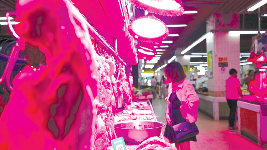 在“生鮮燈”的照射下,豬肉開啟“美顏”模式;葜萑請笥浾邨罱I(yè) 攝