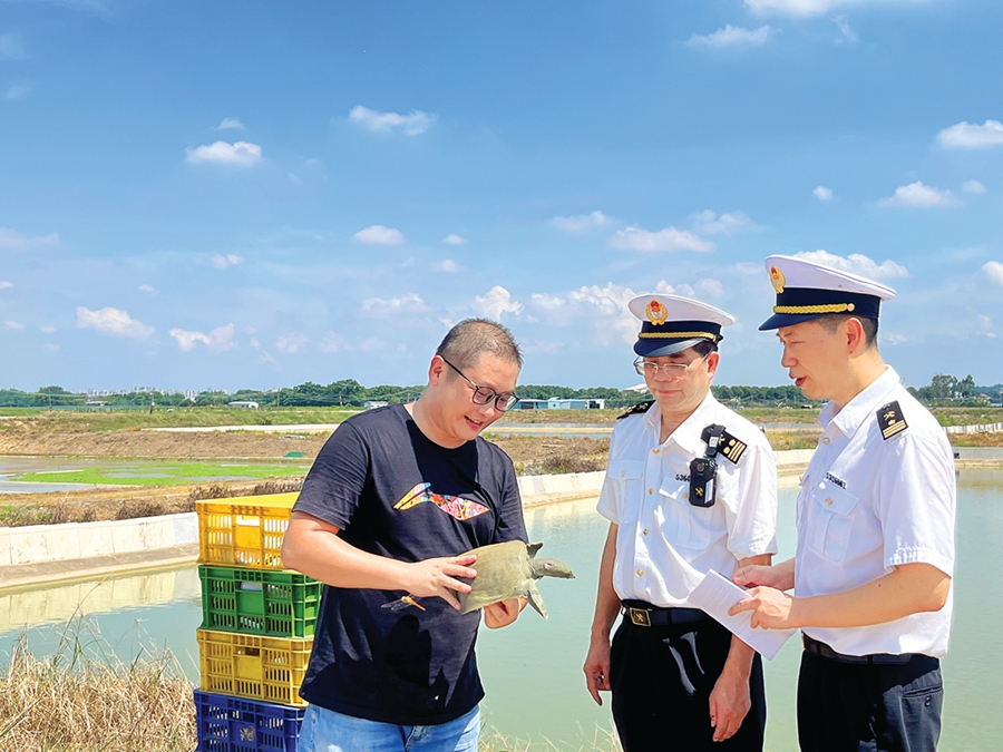 “惠州地區(qū)現(xiàn)有出境水生動物注冊登記養(yǎng)殖場7家,其中甲魚養(yǎng)殖場2家,養(yǎng)殖面積6000多畝,年產(chǎn)量6900噸。為保障轄區(qū)甲魚順利出口,我們推動企業(yè)建立完善自檢自控體系,提供一對一優(yōu)質(zhì)服務(wù),依托海關(guān)檢測資源,加大出口檢測力度,提升產(chǎn)品核心競爭力;同時加強(qiáng)聯(lián)防聯(lián)控,與地方農(nóng)業(yè)部門建立定期溝通機(jī)制,開展養(yǎng)殖水體聯(lián)合監(jiān)測,從源頭保障產(chǎn)品質(zhì)量安全。”惠州海關(guān)查檢二科科長黃志堅(jiān)說。