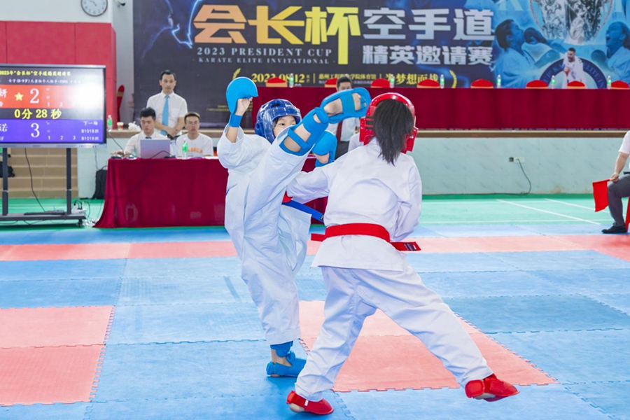 惠州日報訊 (記者譚琳)惠州市2023年“會長杯”空手道精英邀請賽日前在惠州工程職業(yè)學(xué)院體育館舉行,全市近130名運動員參加了幼兒組、兒童組、少年組、青年組和成年組的比賽。本次比賽采用世界空手道聯(lián)盟2022年最新版本比賽規(guī)則,經(jīng)過1天400多場次的角逐,最終決出組手與型各組別49個級別的比賽前八名。