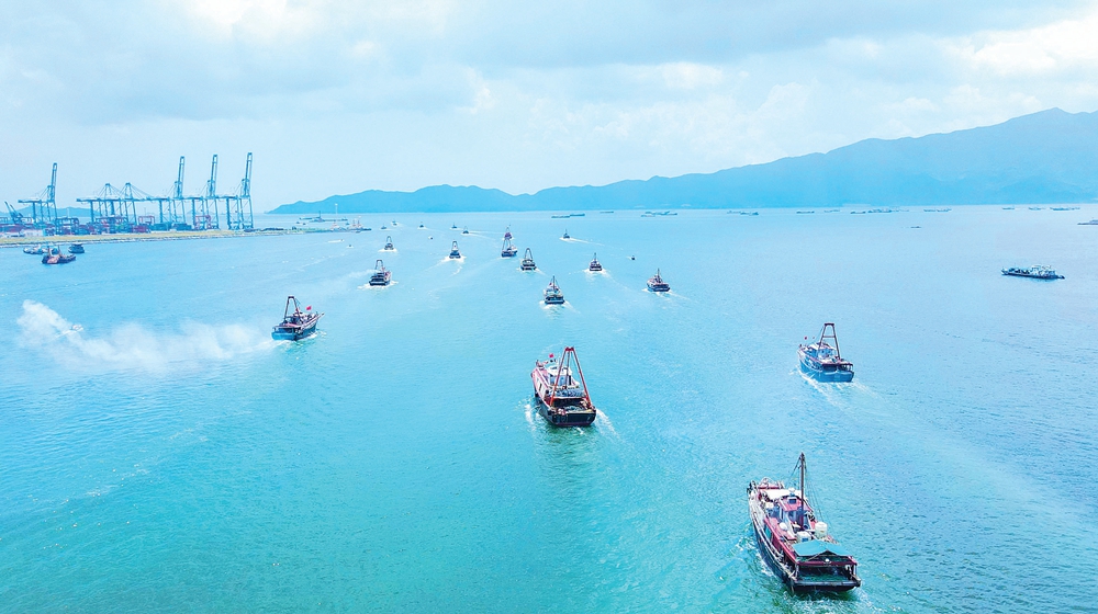 8月16日中午12時(shí),隨著“開漁”令下,為期3個(gè)半月的南海伏季休漁期正式結(jié)束;輺|港口度假區(qū)、稔山范和村、黃埠鹽洲等地漁船陸續(xù)出港,漁民們把船只裝飾一新,在汽笛聲中揚(yáng)帆起航,開始新一輪的海上勞作;大亞灣海域百余艘漁船分別從東升小桂港、澳頭港揚(yáng)帆起航,最終在三門島海域匯成一股洪流涌向南海,一派百舸齊發(fā)入海爭(zhēng)“鮮”的浩蕩景象。