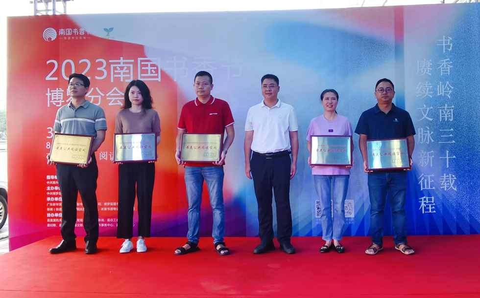 現(xiàn)場(chǎng)向獲得博羅縣“最美閱讀空間”的單位頒發(fā)牌匾。