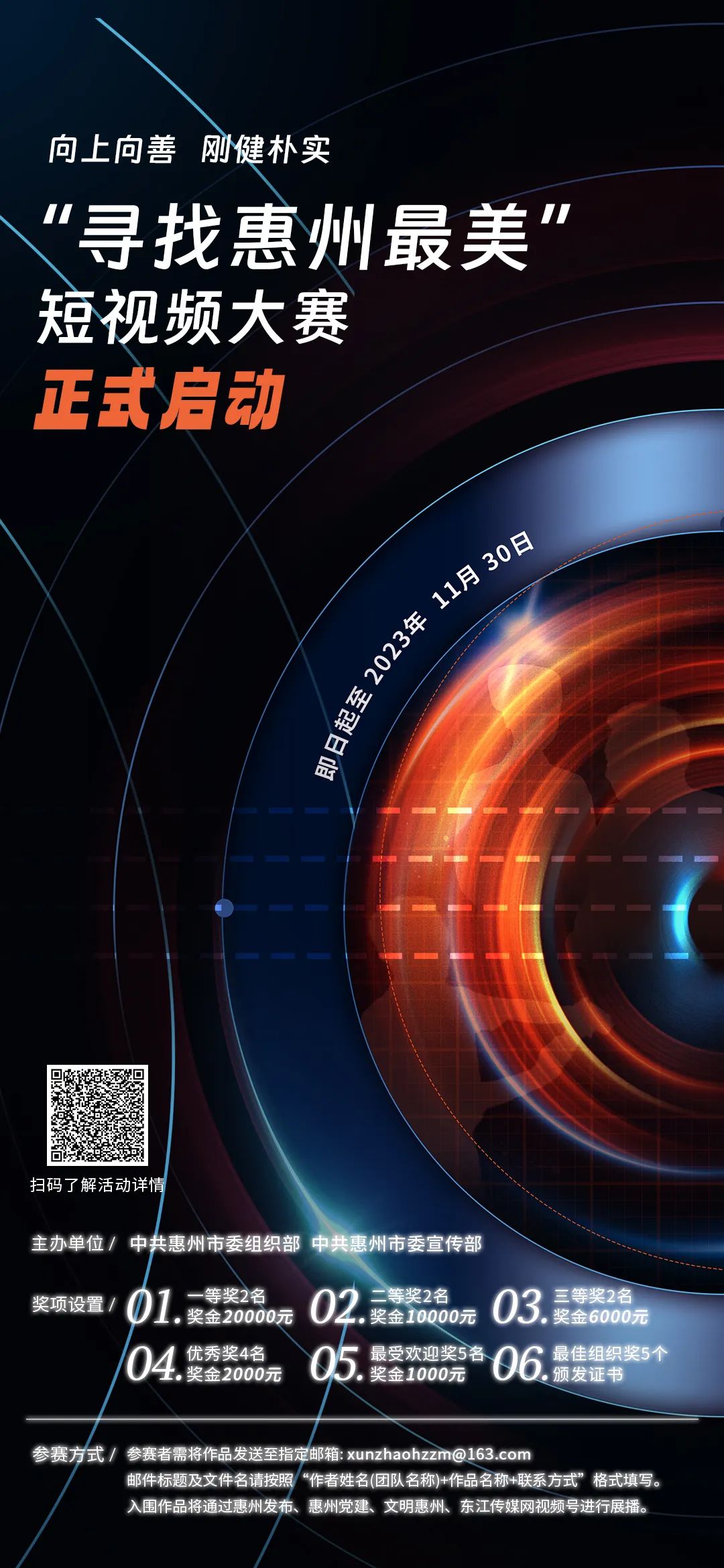 入圍作品將通過惠州發(fā)布、惠州黨建、文明惠州、東江傳媒網(wǎng)視頻號進(jìn)行展播