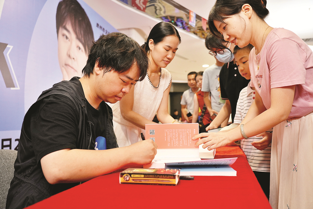 李尚龍現(xiàn)場(chǎng)簽名;葜萑?qǐng)?bào)記者朱金贊 攝