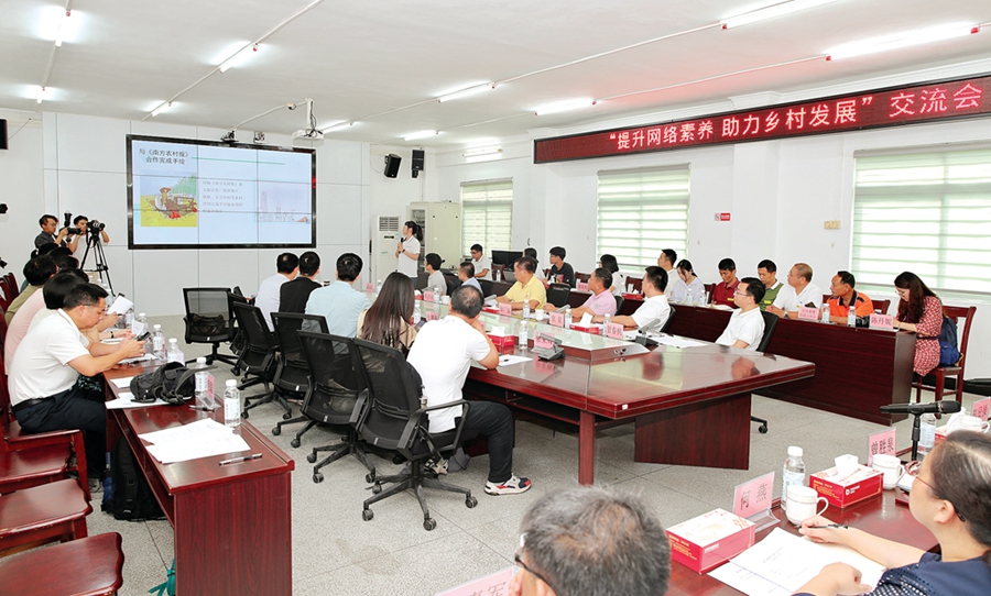 “提升網(wǎng)絡(luò)素養(yǎng) 助力鄉(xiāng)村發(fā)展”主題交流會現(xiàn)場;葜萑請笥浾哏姇承 攝