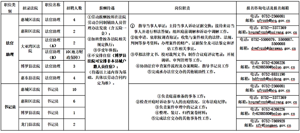 2023下半年惠州法院公開招聘勞動合同制審判輔助人員