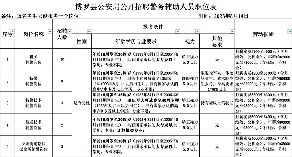 協(xié)助民警從事文職、防暴處突、接處警、監(jiān)所管理等工作,招聘36名警務輔助人員。