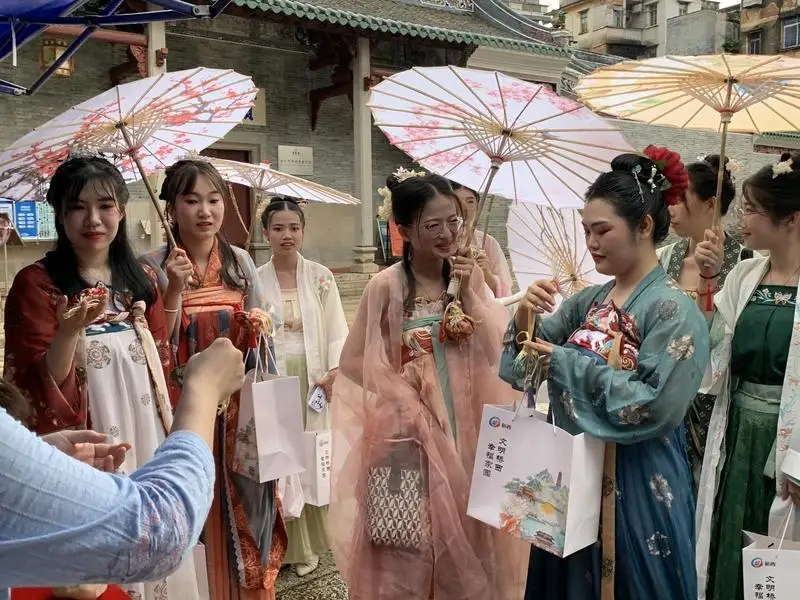 家家乞巧望秋月,穿盡紅絲幾萬條!皶駮,是古代文人墨客顯露才學(xué)、展示品趣的一種方式,七夕期間,人們將家中藏書、字畫取出曝曬于陽光下以書會友。”“穿針乞巧在每年七夕節(jié)舉行,女子手執(zhí)針線,趁月光對月連續(xù)穿針引線,將線快速全部穿過者稱為‘得巧’,就算乞到了靈巧和智慧!鼻嗄昱笥褌儊淼劫e興館門前,在工作人員的指引下,重溫流傳千年之久的曬書、穿針乞巧七夕傳統(tǒng)習(xí)俗。