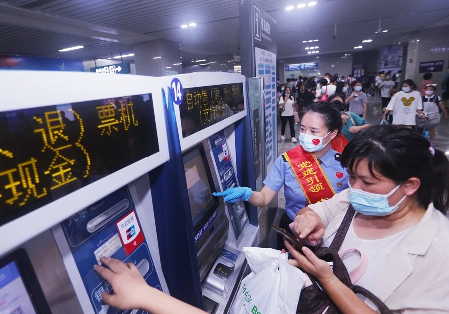 志愿者為過往旅客提供自助購票指導(dǎo)、 路線引導(dǎo)等多項服務(wù)。