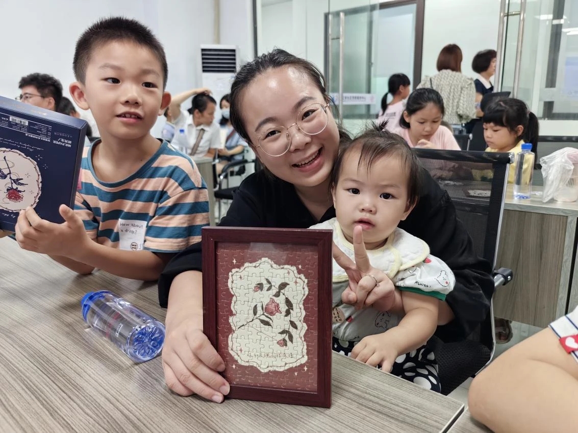 現(xiàn)場還設(shè)置了親子合作玫瑰拼圖環(huán)節(jié)。在工作人員耐心講解拼圖步驟和要點后,家長和孩子們按照圖紙一點一點將拼圖拼接起來,一幅幅永不凋謝的“玫瑰花”呈現(xiàn)在大家眼前。在親子共同參與合作的過程中,孩子們動手動腦的能力得到了培養(yǎng),家長們也在這次活動中感受到了童心,悅享了一段其樂融融的親子時光。