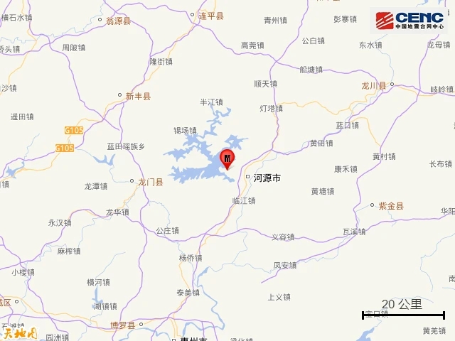 在廣東河源市源城區(qū)發(fā)生2.8級地震(有感)