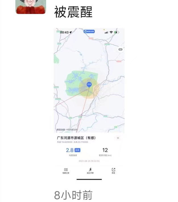 有身在惠州的網(wǎng)友表示“被震醒”。 (圖源:小編朋友圈截圖)