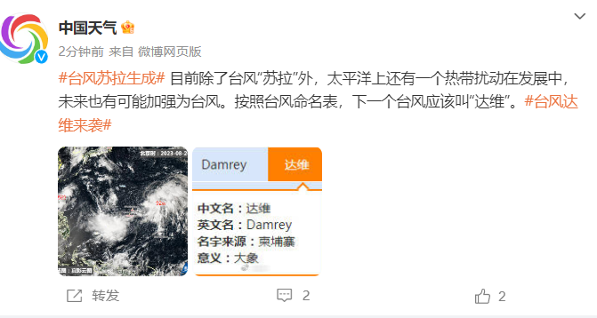 目前除了臺風(fēng)”蘇拉”外,太平洋上還有一個熱帶擾動在發(fā)展中未來也有可能加強為臺風(fēng)。按照臺風(fēng)命名表,下一個臺風(fēng)應(yīng)該叫”達維”。