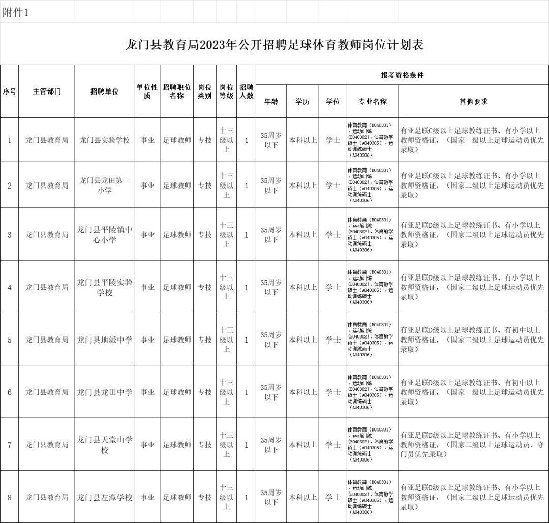 龍門縣教育局2023年公開(kāi)招聘足球體育教師