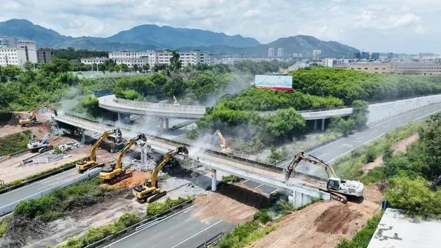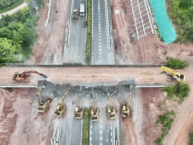“我們多次召開(kāi)專(zhuān)題會(huì)議,模擬演練拆除天橋的工序和細(xì)節(jié),不斷優(yōu)化施工及交通組織方案,最終選擇了最佳的機(jī)械鑿除方案!表(xiàng)目負(fù)責(zé)人蘇高裕表示,現(xiàn)場(chǎng)加大資源投入,配置了大型設(shè)備200多臺(tái),施工人員600多名。