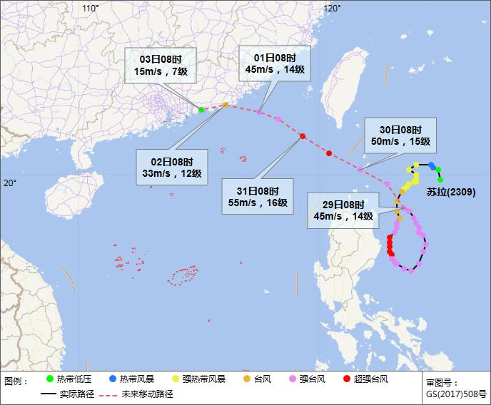 臺(tái)風(fēng)“蘇拉”的路徑