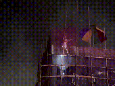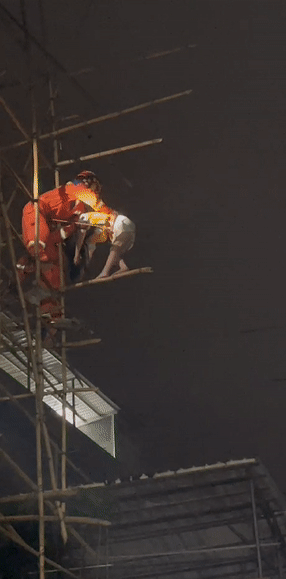 一女子爬上腳手架欲輕生