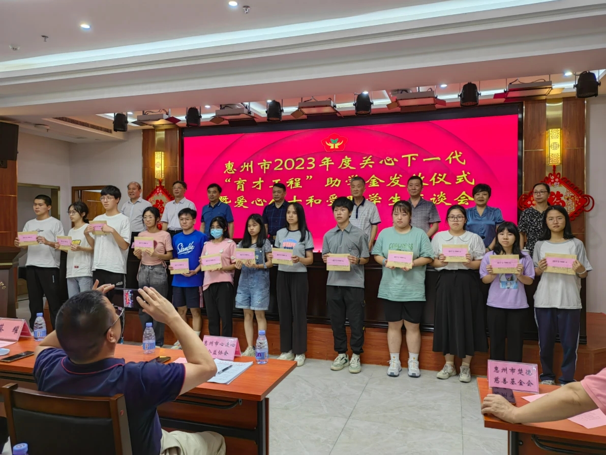 惠州日報訊 (記者駱國紅 通訊員蘇麗婭)日前,惠州市2023年度關(guān)心下一代“育才工程”助學(xué)金發(fā)放儀式暨愛心人士和受助學(xué)生座談會舉行,市民政局、市教育局、市工商聯(lián)、市關(guān)工委等部門相關(guān)負(fù)責(zé)人,以及受助學(xué)生代表等參加助學(xué)金發(fā)放儀式。