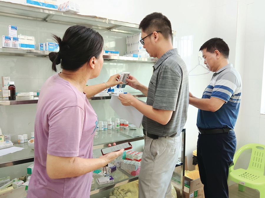 惠州紀檢監(jiān)察工作人員現(xiàn)場檢查街道衛(wèi)生站建設(shè)及運行、藥品質(zhì)量是否有保障等工作。
