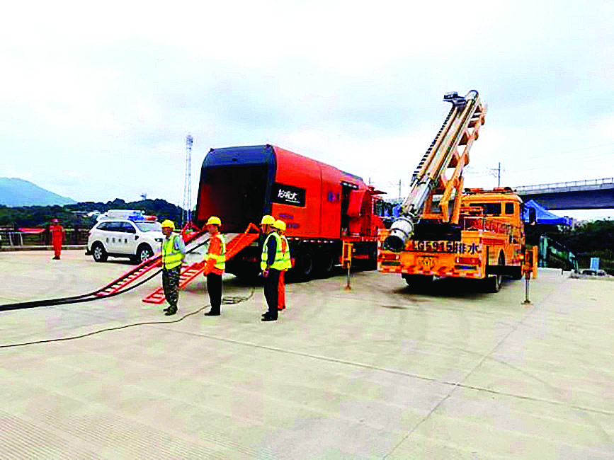 9月1日上午,市排水管理中心派出應(yīng)急搶險前置隊伍人員和大型排澇設(shè)備到達惠陽淡水集結(jié)待命;葜萑請笥浾哂舞 通訊員鄧芷雅 攝