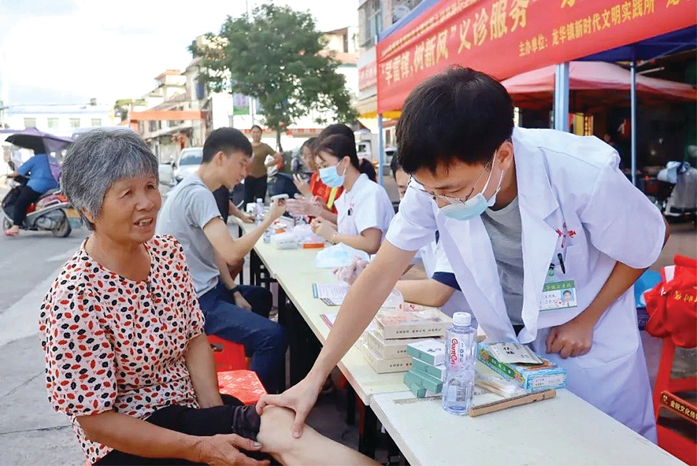 廣東醫(yī)科大學(xué)紅鋒學(xué)生黨員實(shí)踐服務(wù)隊(duì)為博羅縣龍華鎮(zhèn)居民免費(fèi)體檢。