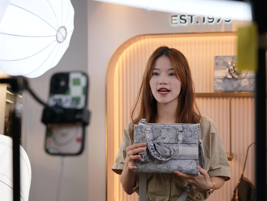 “我們公司主要從事中高檔時(shí)尚皮具的設(shè)計(jì)、研發(fā)、生產(chǎn)及銷售,是亞太地區(qū)知名的中高端女包品牌運(yùn)營商!绷直笊榻B,目前,公司擁有超400家銷售網(wǎng)點(diǎn)。在天貓、京東、抖音、唯品會(huì)等主流電商平臺(tái)上,連續(xù)多年名列女包行業(yè)頭部品牌。